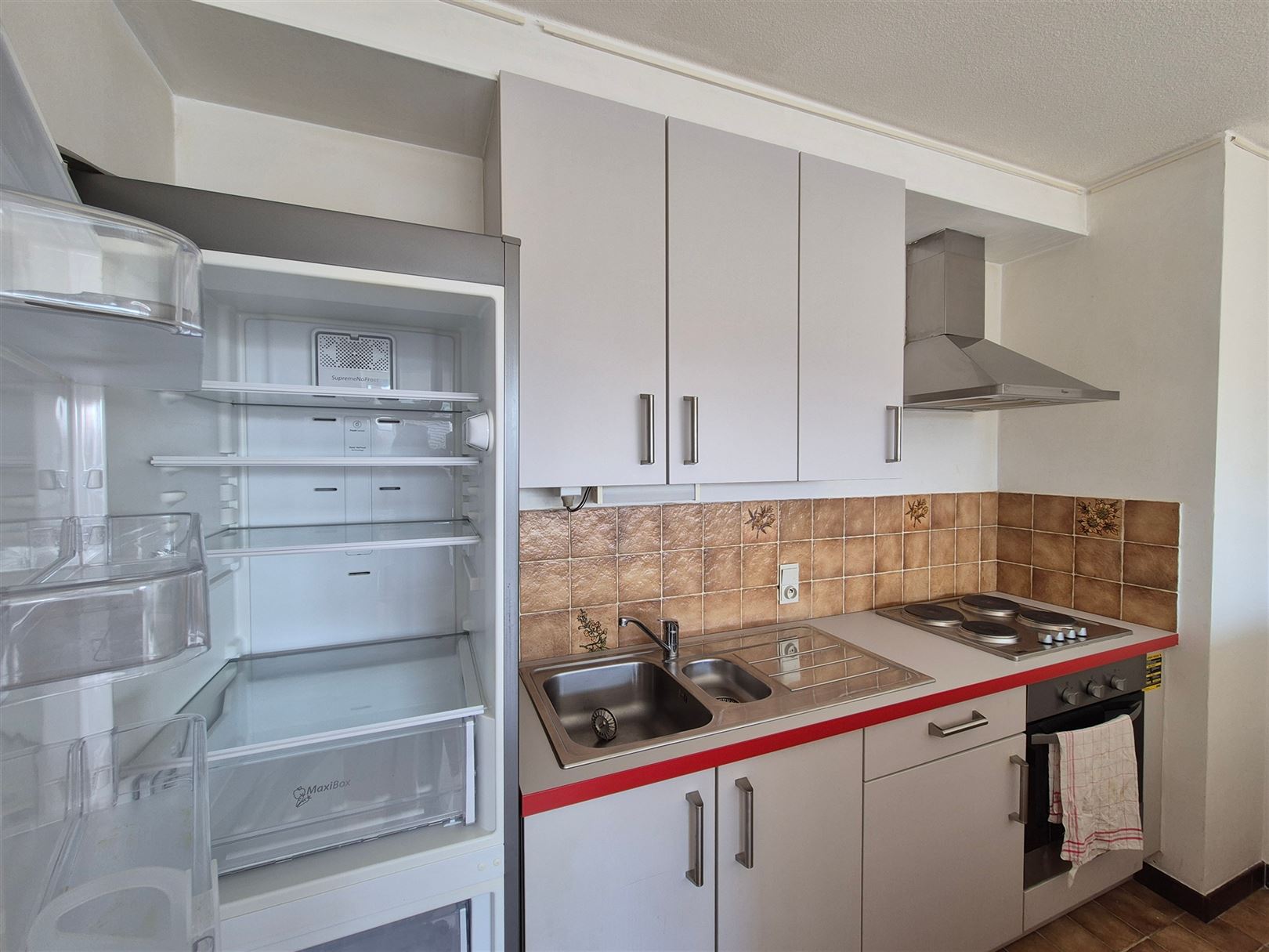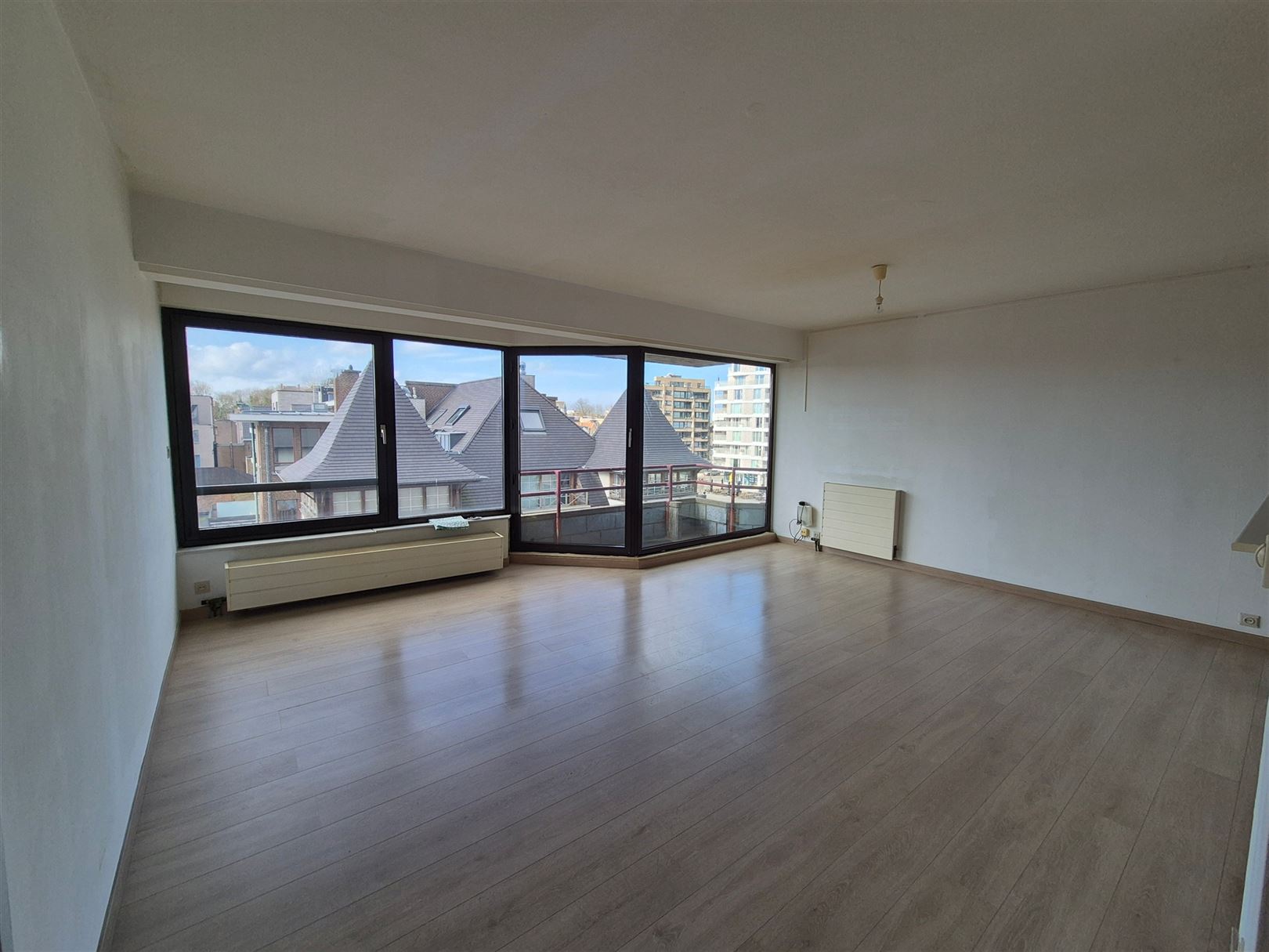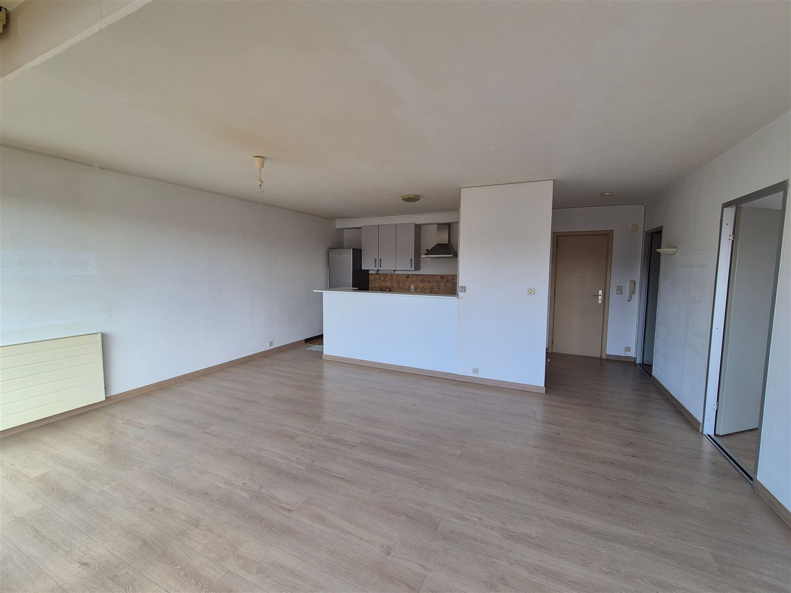 Het appartement geniet van een zeer mooie lichtinval en is heel de namiddag zonnig, wat zorgt voor een aangename en warme sfeer in de leefruimte.